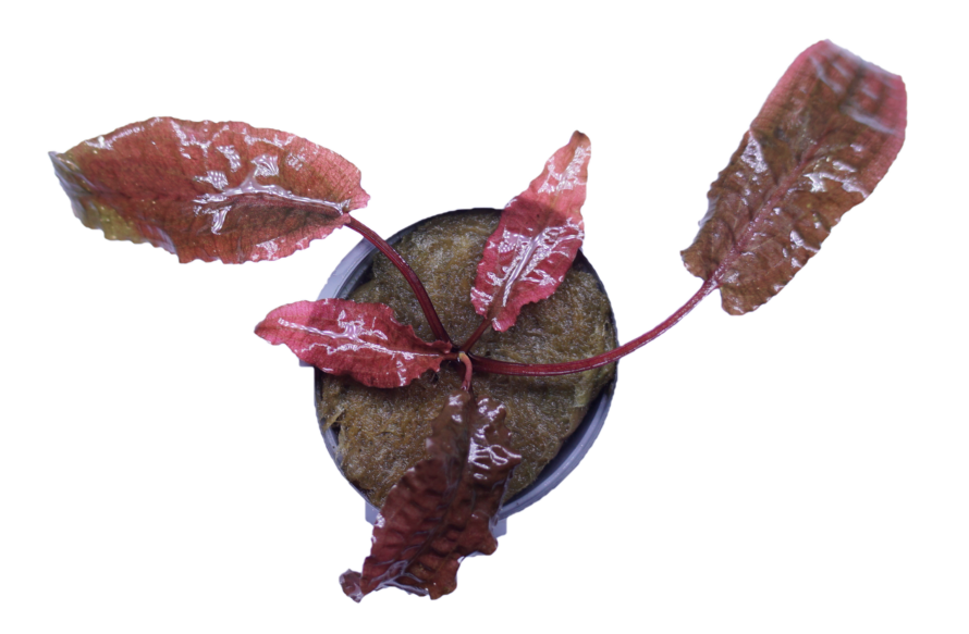 Bright pink foliage with strong CO₂ and light. Very slow growth rate. |