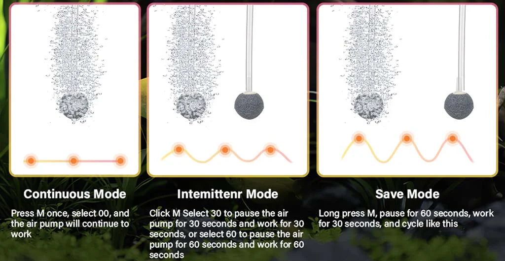 The multiple oxygenation modes make the rechargeable air pump meet the daily needs of the aquariums.