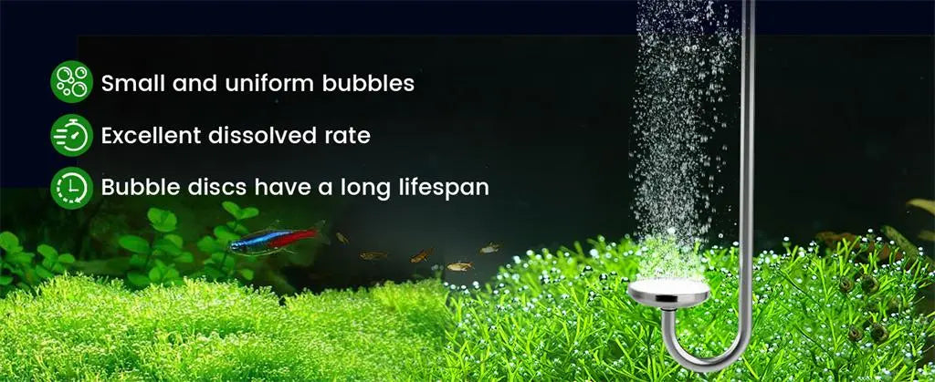 ➤ When using this CO₂ diffuser for the first time, you may observe large bubbles appearing on the edge. This is a normal occurrence and will gradually disappear after 1–2 days.