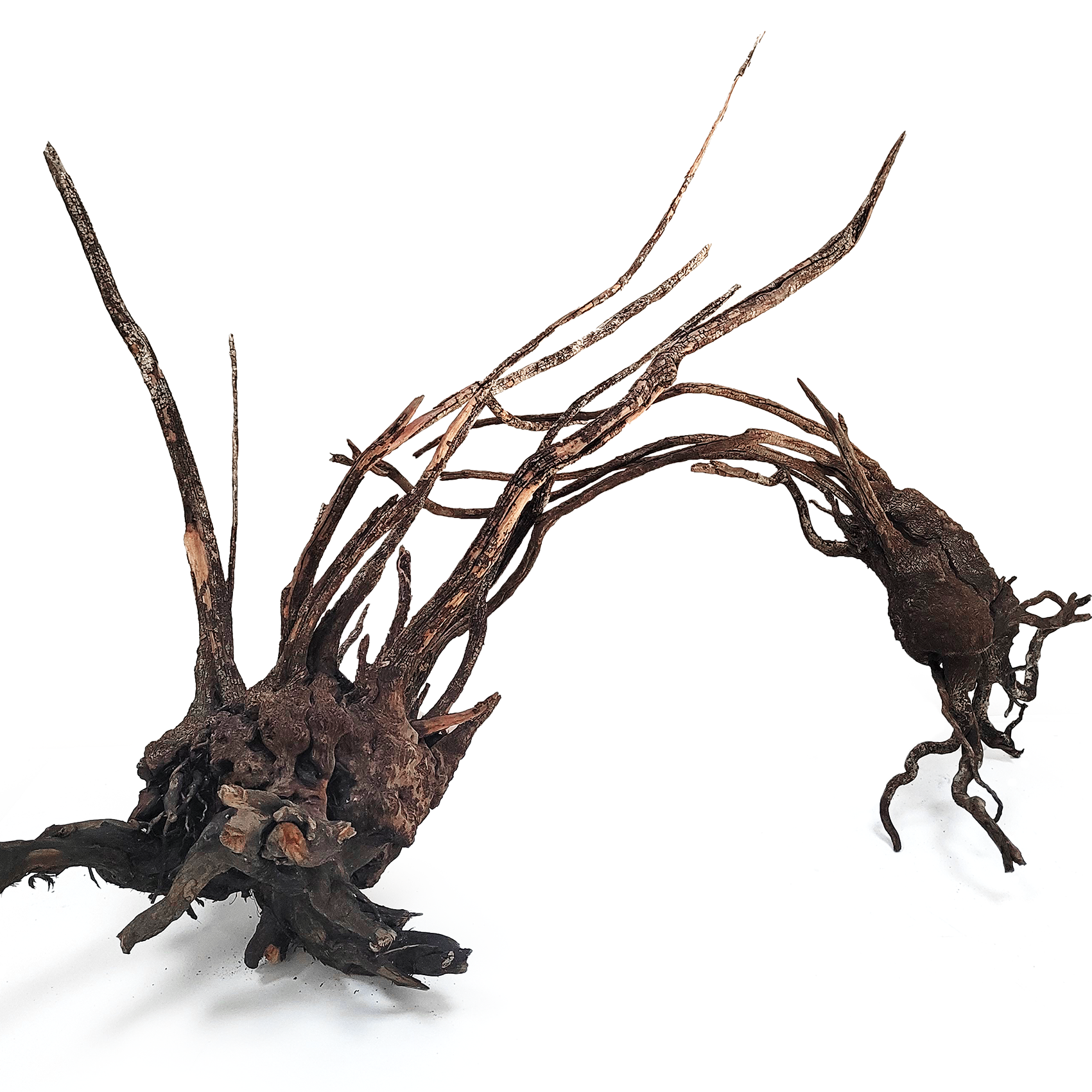 An extremely rare wood with unique striped textures, ideal for aquascaping and biotope aquariums. The wood features a thicker base root complemented by flowing branches, allowing for creative ryoboku-style formations. With minimal tannins, enjoy crystal clear water from the start in your aquarium or paludarium.