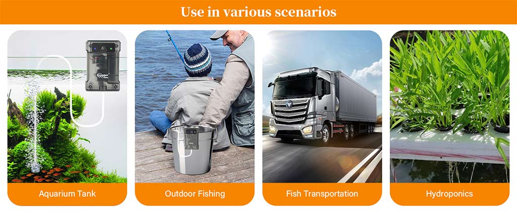 The compact and lightweight design makes the pump easy to carry. It is perfect for daily use in fish tanks, indoor tanks, outdoor fishing trips, fish transport, power outage, or emergencies includes no power supply environment. IPX4 Waterproof construction ensures durability and reliability in a variety of environments and safer for outdoor use.