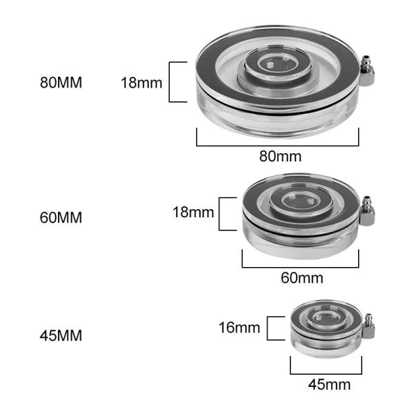 There are 3 kits for different use: 1.7-inch/2.3 inch/3.1-inch air stone set