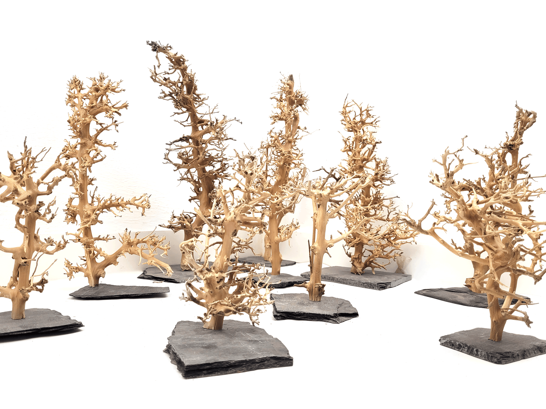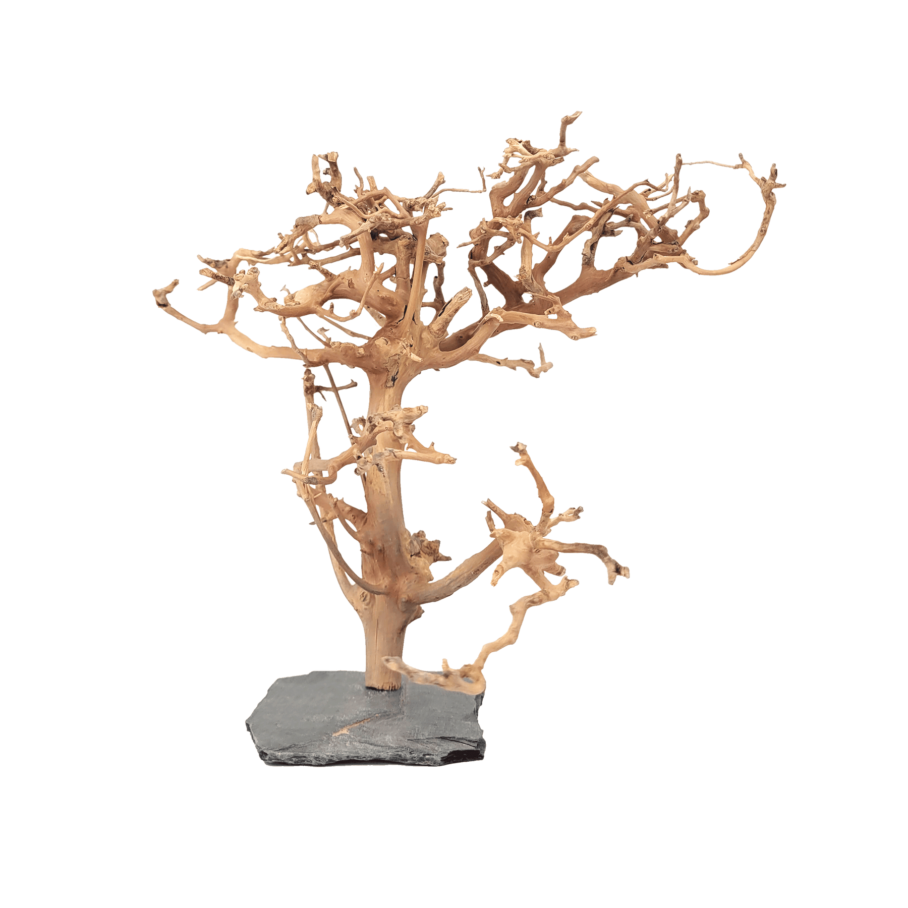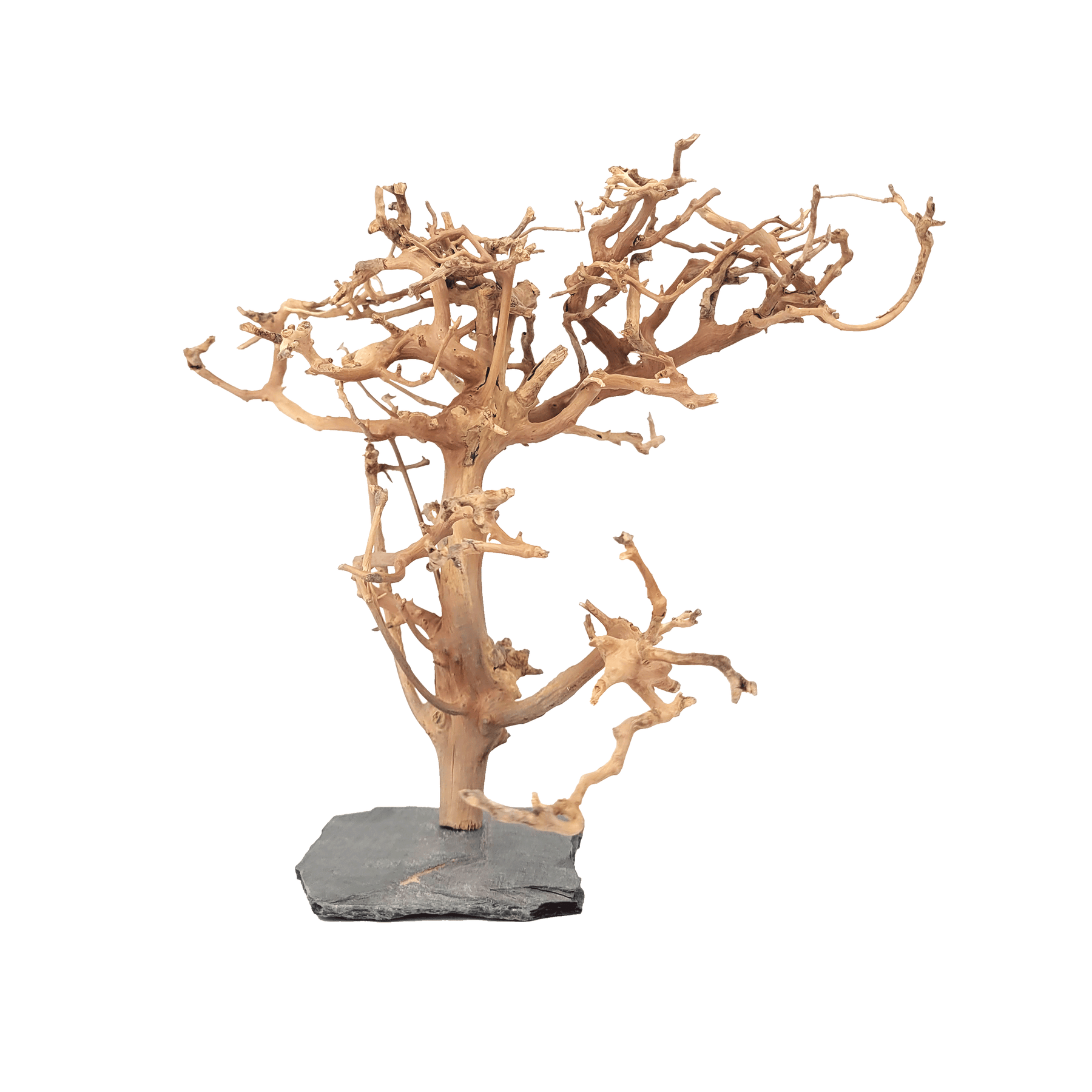 Create a stunning forest environment in your aquarium or terrarium with the Forest Tree collection. Made from natural wood materials, these handcrafted trees on slate stone bases allow for customization in size and shape, providing a unique and authentic forest-like setting. The added complexity of the forest provides more hiding spots and promotes exploration and activity for inhabitants. Small Forest Trees are up to about 8" in height, Medium are up to 14", Large are up to 20"