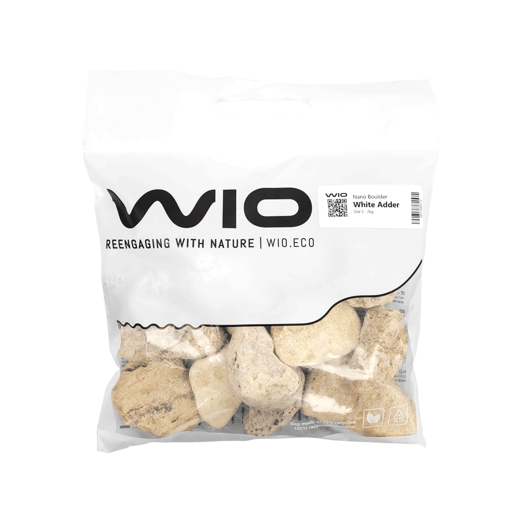 White Adder Boulder Nano Stone - Softness, pale contrast, and refined texture to scape-rare miniature river boulders with cream-white strata, natural holes, and smooth layered crevices that evoke the character of Hakkai stones in pale-cream delicate form.
