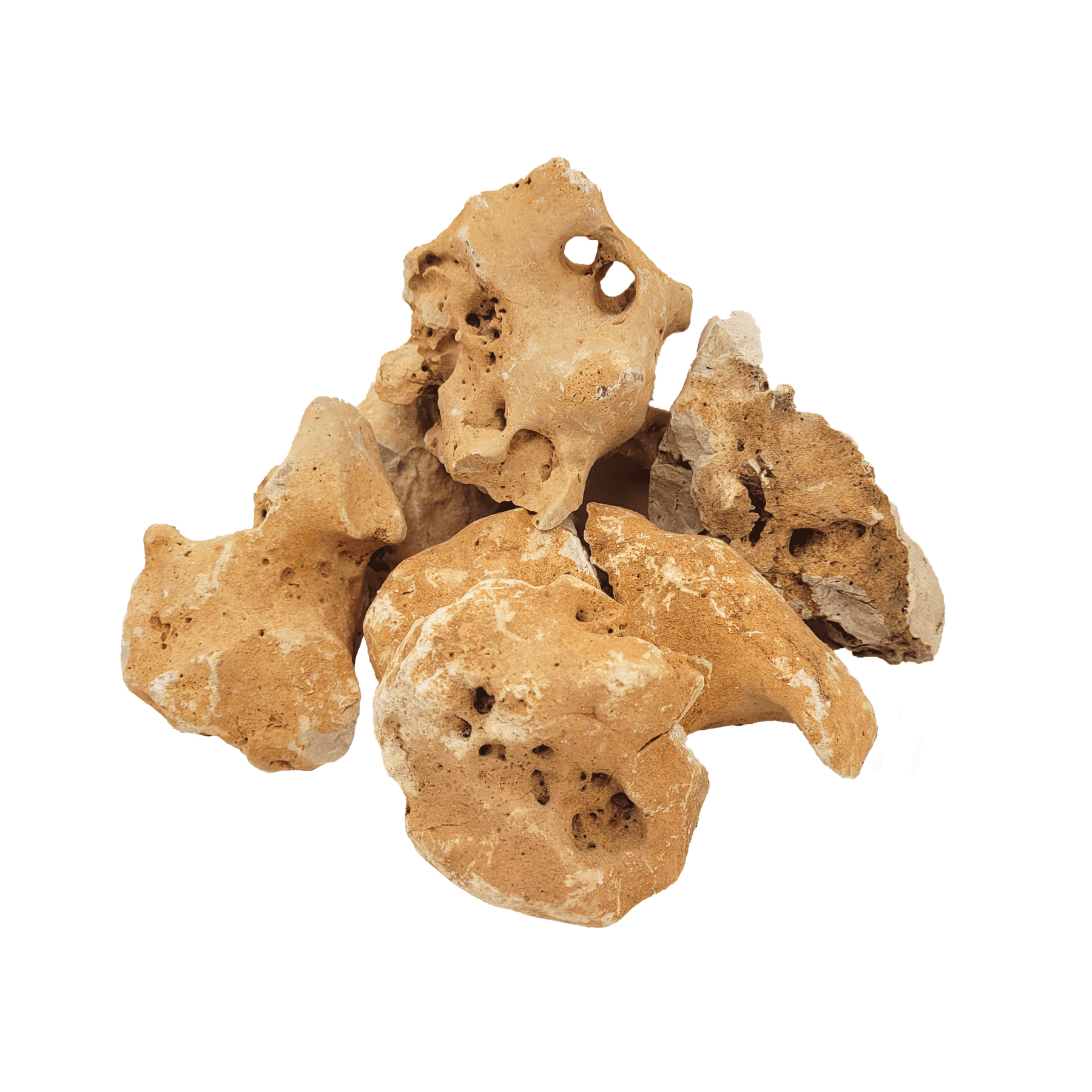 Hole Stone Nano Rock is a sedimentary rock with distinctive holes, warm colors, and gritty textures, perfect for providing shelter to small aquatic animals and a home for epiphytic plants in nano aquariums or vivariums.